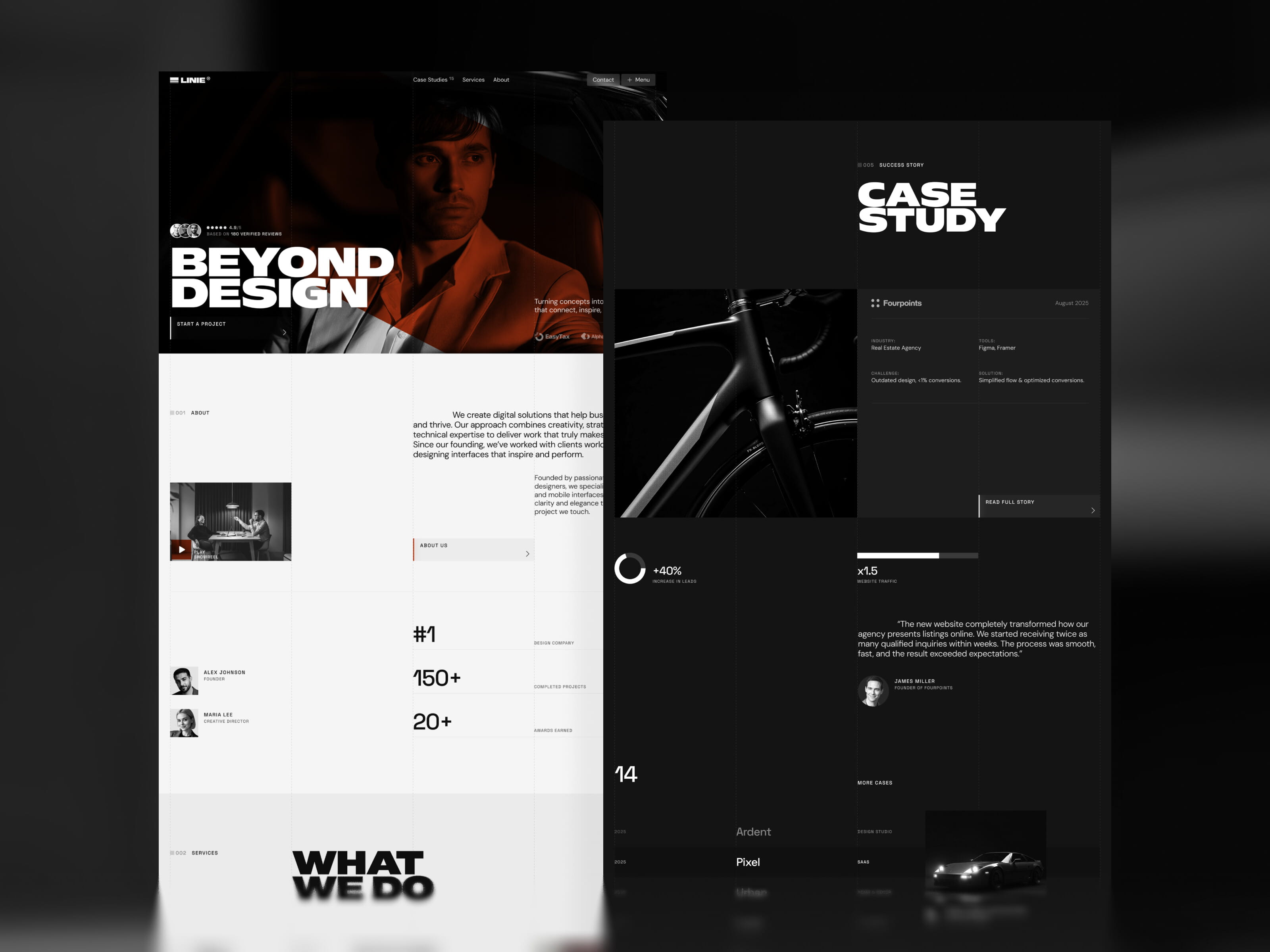 Linie© is a modern, sleek Framer template for agencies, consulting, and creative studios. Quickly create a professional website with a focus on conversion and client trust.