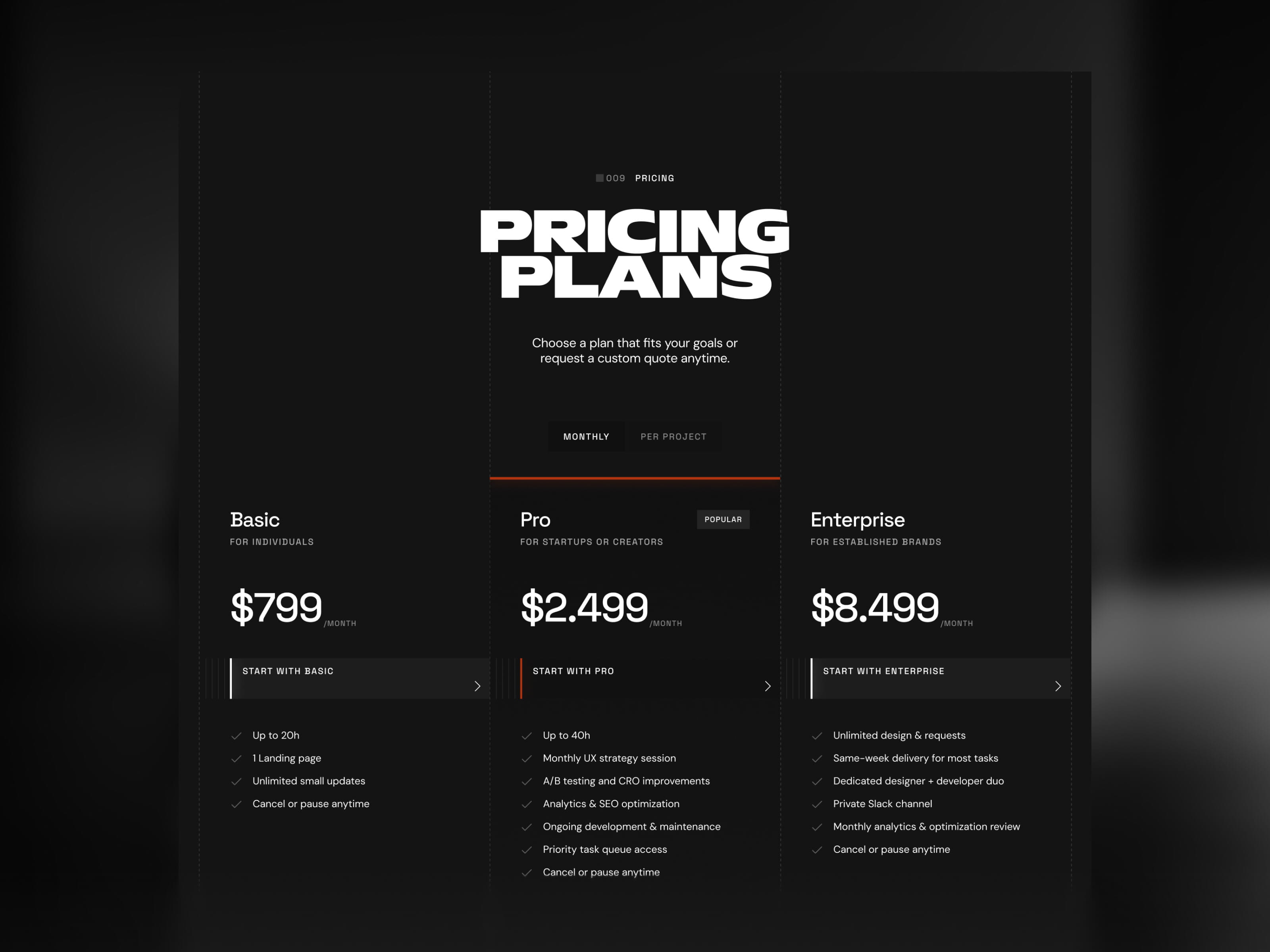 Ready-made sections and pages to present your services, highlight case studies, showcase your team, testimonials, blog, careers, and more, designed to impress potential clients